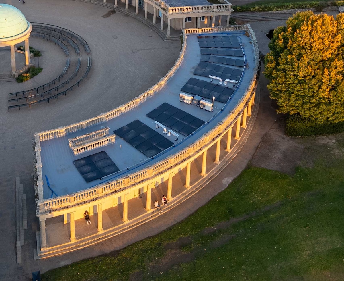 Jonathan said, “One of the factors to consider was the size and placement of the ASHPs. Due to its heritage and distinctive architectural design, the pavilion is frequently photographed by both cameras and drones. As the ASHPs needed to be roof-mounted, a key design parameter of the council was to keep visibility of any of the kit on the roof minimal above the pavilion balustrade.