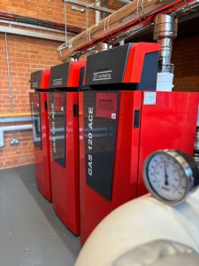 The works needed to be completed in term time, so minimising disruption to the live environment and adhering to tight deadlines were major considerations. With the main building’s plant room difficult to access via narrow stairs and a single door, the boilers were supplied in a modular cascade design. This helped to overcome site restrictions, improve redundancy, and optimise the efficiency of the boilers.
